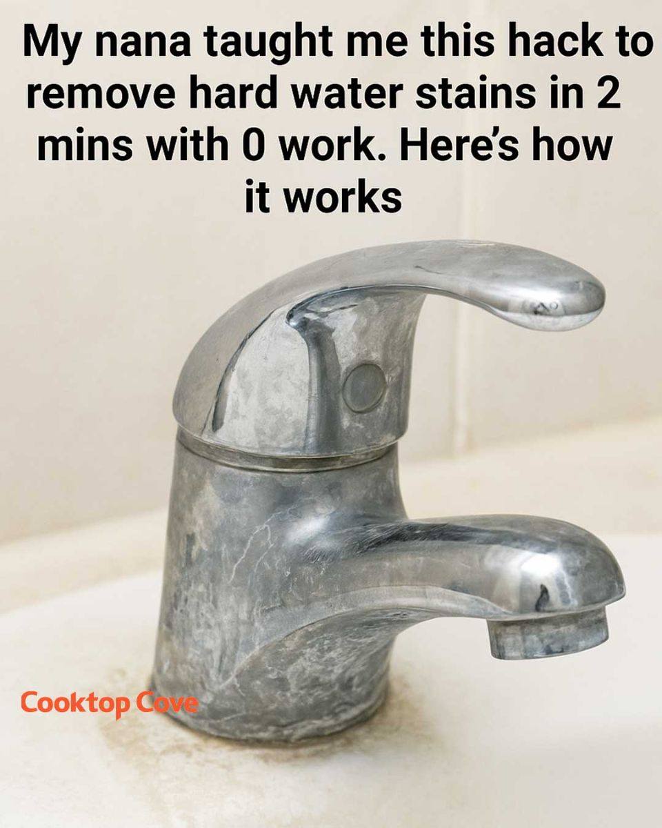 My nana taught me this hack to remove hard water stains in 2 mins with 0 work. Here’s how it works